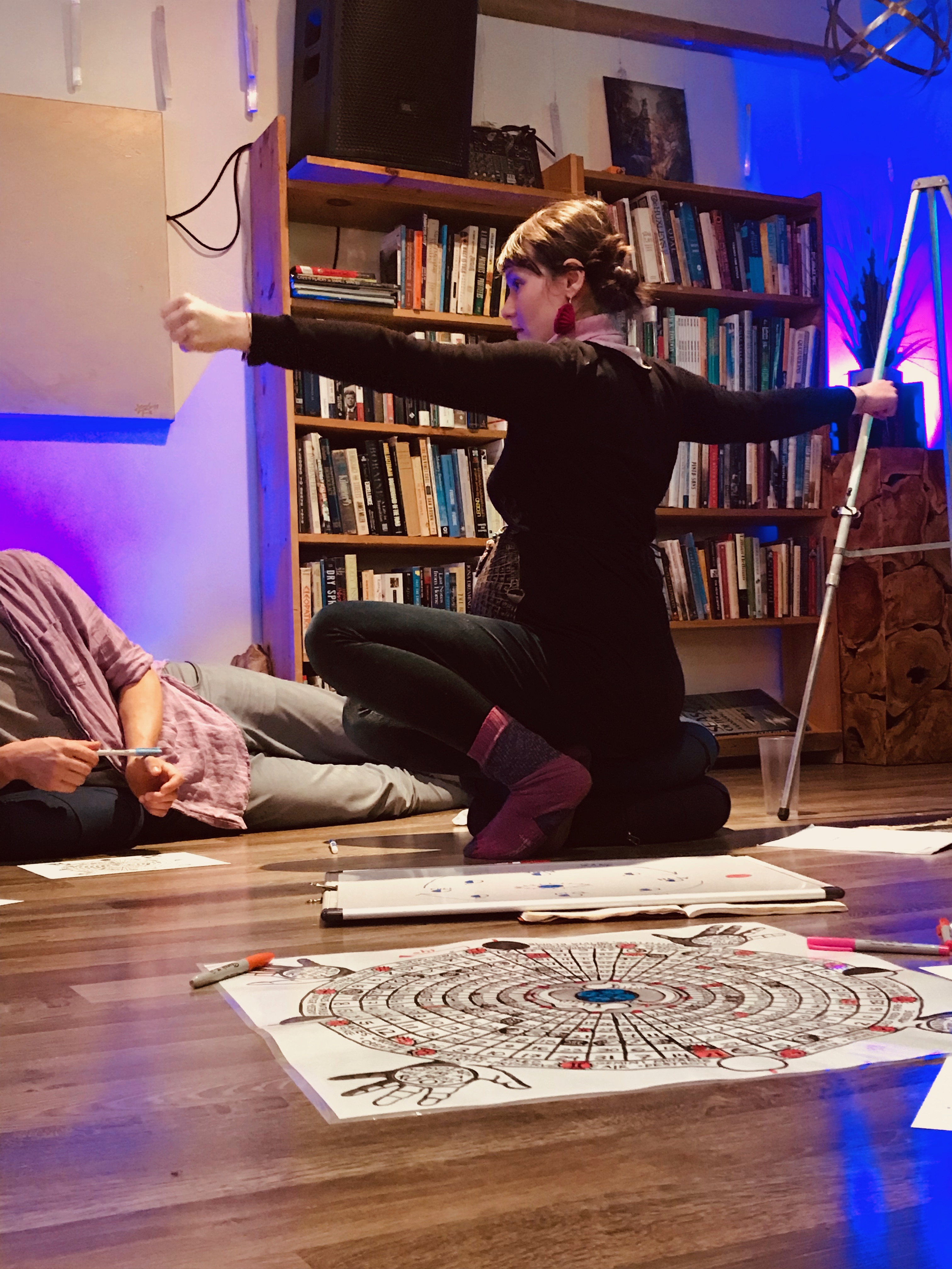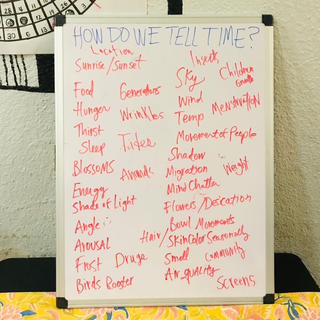The workshop is inspired by popular education, and seeks to unveil the ways in which hegemonic paradigms informing our relationship with time alienate us from the ecosystems and territories in which our lives are embedded. The long term goal of the workshop is to create a container to collaboratively create socially and ecologically relevant calendars. Going from exploring concepts of space that are unfathomably large (i.e. our location in the milky way galaxy) to those what we can hold in our hands (i.e. the cycles of seeds), this community-based experience explores a multi-scalar understanding of time and space. Participants are invited to use their bodies as landmarks in understanding relationships between celestial bodies.